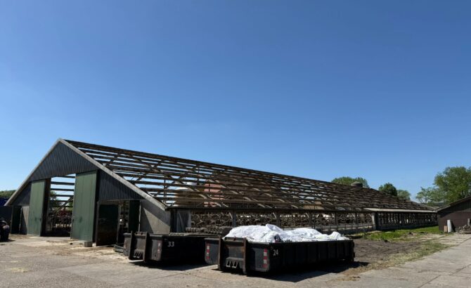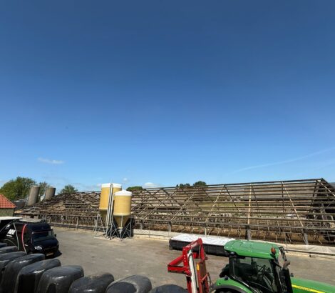 Wij hebben bij deze stallen in Gauw bijna 2000 m² aan asbesthoudende golfplaten gesaneerd. Dit project is zorgvuldig en met vakmanschap afgerond.